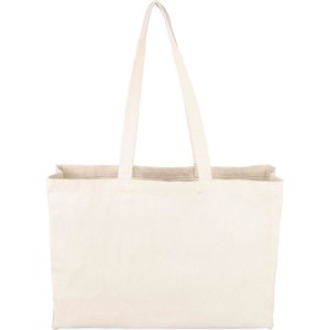 Bevásárlótáska 10 cm széles talppal. Maximális teherbírás: kb. 8 kg. Anyaga: Oeko-Tex natúr pamut 280 g/m2.