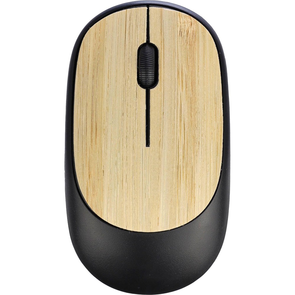 Vezeték nélküli egér bambusz részletekkel, 2,4 GHz USB vevővel és 1 200 DPI felbontással. Az elemet tartalmazza. Egyenként barna kartondobozba csomagolva. Anyaga: ABS.