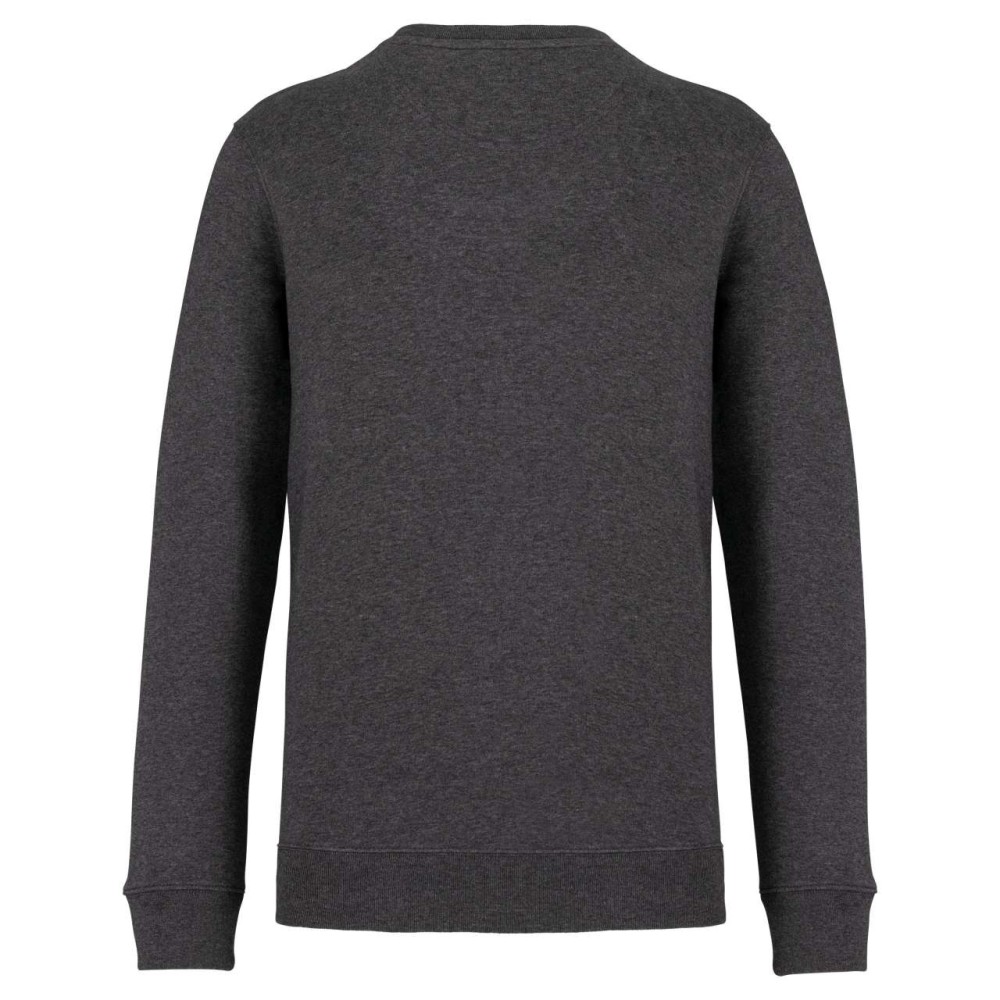85 % bio, fésült pamutból és 15 % újrahasznosított poliészterből készült. Unisex. Egyenes szabás. LSF (Low Shrinkage Fleece: előzsugorított polár). Kerek nyakkivágás. Félhold alakú. Méretcímke organikus pamut és újrahasznosított poliészter logóval. 1x1 bordás nyakpasszé, alsó szegély és kézelő. Duplaöltés a kézelőn, karöltőben és kézelőn. Egyszeres felülvarrás a nyakkivágáson. Belső szalagozott nyakrész. A nyakrészen nincs márkajelzés, csak méretcímke a könnyebb dekorálás érdekében. A ruhadarabhoz kartonpapírból készült ismertetővel, amely felsorolja a felhasznált környezetbarát anyagokat. OEKO-TEX N CQ1007/7 STANDARD 100 tanúsítvánnyal rendelkezik. IFTH. 350 g/m2.